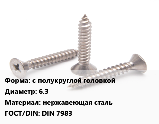 Саморез с полукруглой головкой D=6.3 нержавеющая сталь ГОСТ: DIN 7983