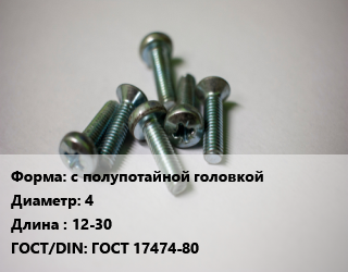 Винт с полупотайной головкой 4х12-30 ГОСТ 17474-80