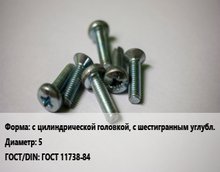 Винт с цилиндрической головкой, с шестигранным углубл. 5 ГОСТ 11738-84
