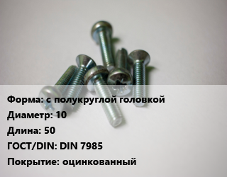 Винт с полукруглой головкой 10х50 DIN 7985 оцинкованный
