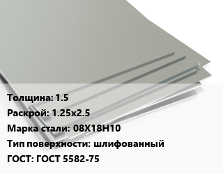Лист нержавеющий 1.5 1.25х2.5 Сталь: 08Х18Н10 Тип:шлифованный ГОСТ 5582-75