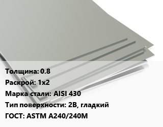 Лист нержавеющий 0.8 1х2 Сталь: AISI 430 Тип:2B, гладкий ASTM А240/240М, шт цена от 2 361 ₽ / т, где купить, условия доставки в Ростове-на-Дону и Ростовской области