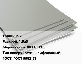 Лист нержавеющий 2 1.5х3 Сталь: 08Х18Н10 Тип:шлифованный ГОСТ 5582-75