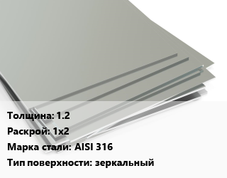 Лист нержавеющий 1.2 1х2 Сталь: AISI 316 Тип:зеркальный